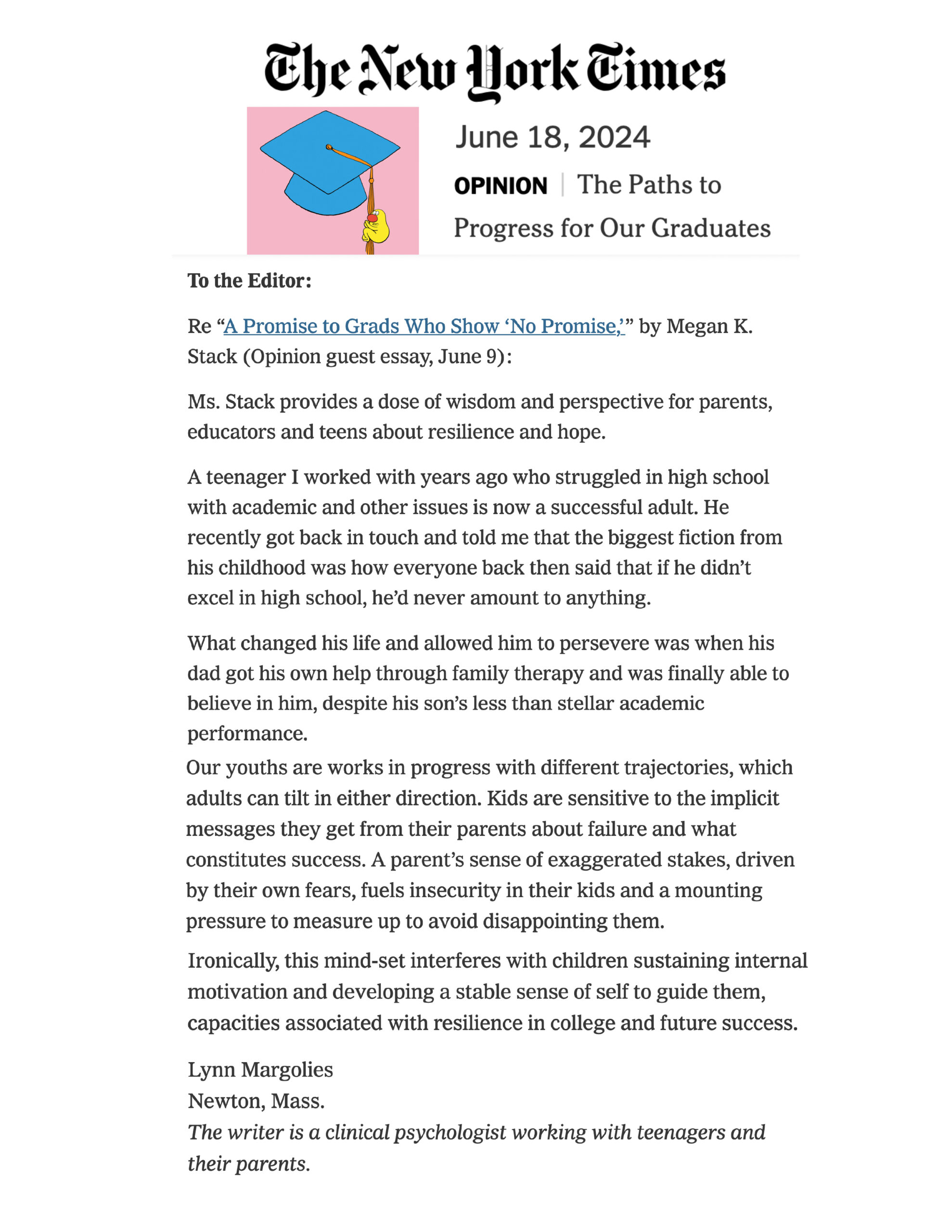 Dr. Margolies’ commentary about moms using guilt-tripping as a way to cope with their children’s independence.